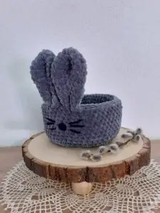Dieser kleine Hasenkorb ist ein Lieblingsstück zu Ostern. Mit seinen aufgestellten Ohren und dem weichen Garn eignet er sich wunderbar, um darin Süßigkeiten oder kleine Überraschungen zu verstecken. Besonders Kinder haben Spaß daran, ihn beim Osterspaziergang zu suchen – und wer ihn findet, entdeckt meist mehr als nur Schokolade: ein Stück handgemachter Freude.