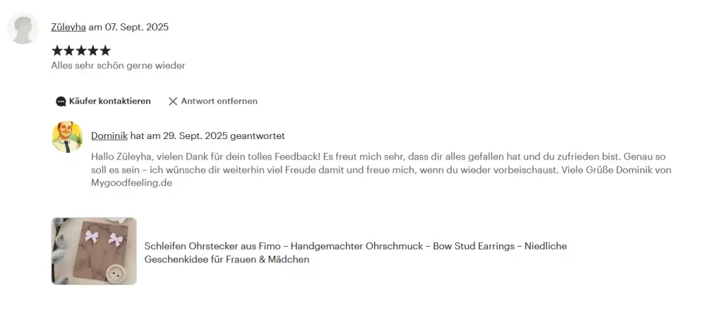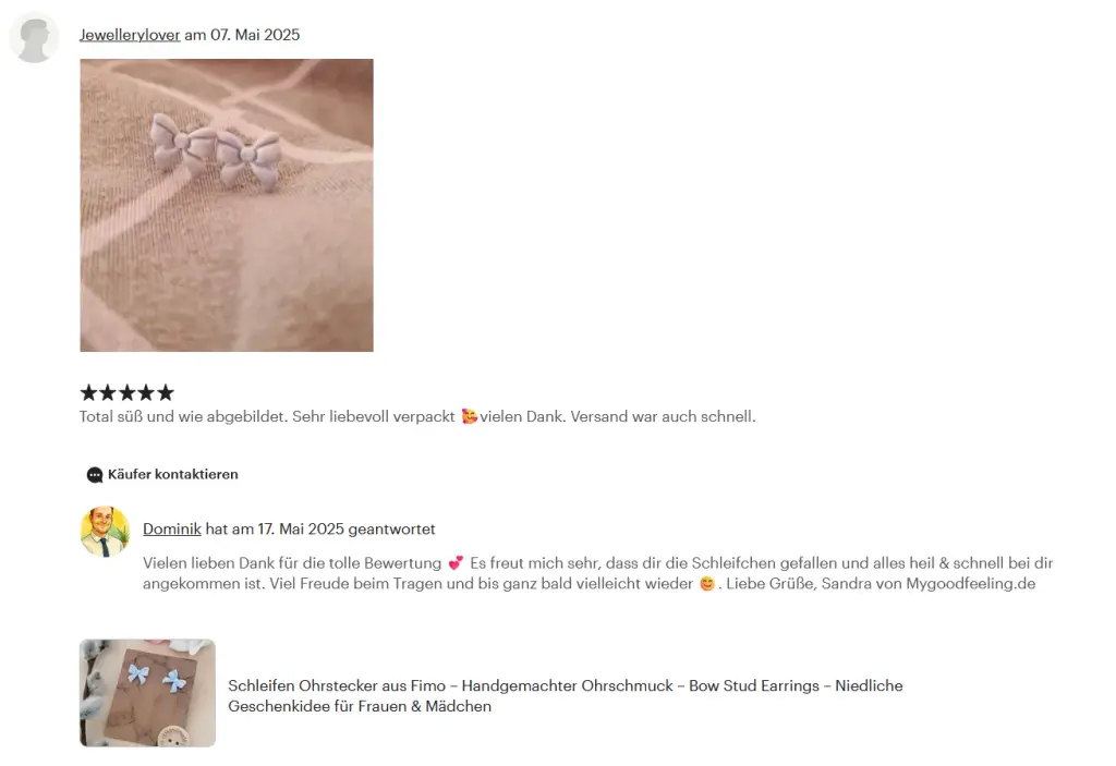 Jedes Stück entsteht mit viel Liebe zum Detail – und es freut mich jedes Mal, wenn das auch bei den Trägerinnen und Trägern ankommt. Hier sind ein paar Stimmen von Menschen, die sich bereits über meine Fimo-Schätze gefreut haben.
